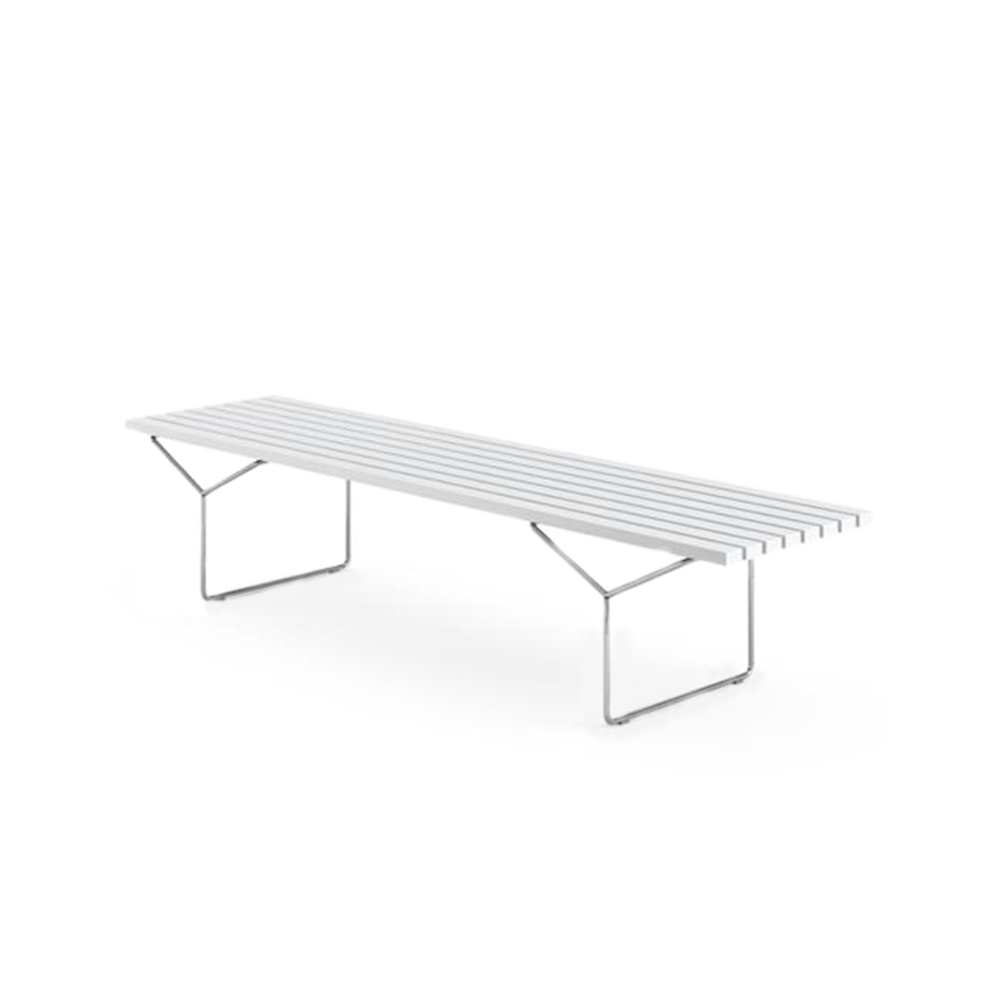 Um clássico, design moderno que realça qualquer ambiente. O Banco Bertoia apresenta ripas de madeira maciça ou pintadas. Sua base é fabricada em Aço Inoxidável.