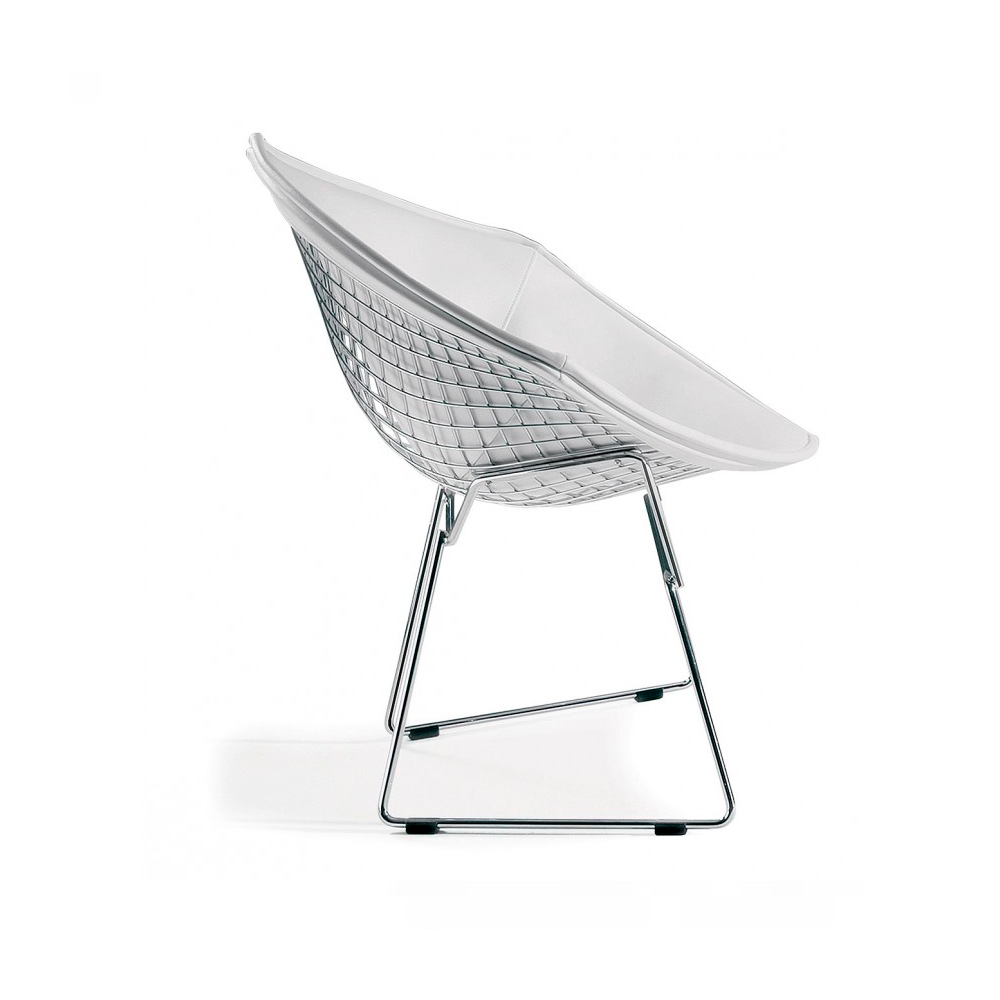Concha, Base, Pés Cromados , Assento Estofado em Corano.